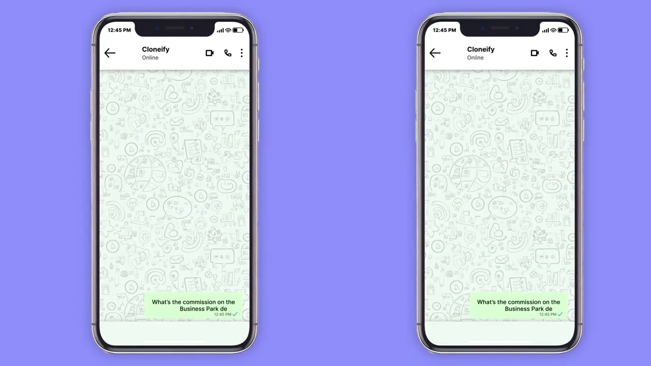 Chat with Cloneify from WhatsApp. Perfect for teams on the go — works exactly like texting a colleague.